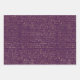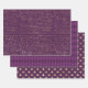 Papier d'emballage à thème Purple et Gold Paris dans trois styles différents, dont l'arlequin, la fleur de lis et l'écriture française ancienne.