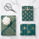 Papier d'emballage vintage Paris turquoise (turquoise) et motif or dans trois styles différents.