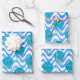 Ondes bleu foncé et clair. Version motif de la méduse de dessin animé. Papier d'emballage personnalisé.