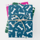 White Dog Bones Design Wrapping Paper Sheets with customizable background colors.