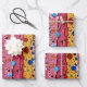 This wrapping paper is covered with an abstract design filled with stripes, polka-dots, and sparkles.