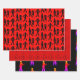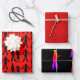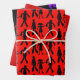 Feuilles papier d'emballage Zombie. Les couleurs rouge et noir avec les images de la mort de la marche en silhouette est sur une feuille. L'un est un motif d'étoile rouge, et le troisième est noir solide avec motif Zombie dans des couleurs éclatantes. Parfait pour envelopper des cadeaux pour un anniversaire ou un événement à thème horreur.