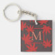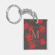 Porte - clé monogrammé rouge et gris élégant avec un élégant art de la feuille d'érable.
