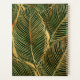 Dessin feuille d'or de luxe moderne, rempli de parties scintillant d'or brillant d'or brillant main feuille plante dessiné à la tropicale, créant un inhabituel feuille d'or exotique feuillage motif extraordinaire d'art tropique, sur un look velouté branché arrière - plan de couleur vert de forêt. Art contemporain chic et élégant, or jaune et couleurs vert émeraude peignent l'empreinte photo de la nature.