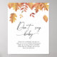 Invitation vos invités avec cette aquarelle tombant feuille sur le thème de l'automne invitation baby shower. Utilisez les outils de conception pour modifier le texte, modifier la couleur et le style de police pour créer un modèle unique d'invitation aimable. Éléments correspondants disponibles.