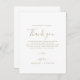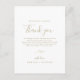 Cette carte de réception en or minimal à la feuille est parfaite pour un mariage élégant. Le design se compose d'une silhouette de verdure simple en feuille d'or à l'allure minimaliste classique. Placez ces cartes à la table de chaque invité à la réception de votre mariage. Personnalisez la carte avec vos noms et un message de remerciement spécial.