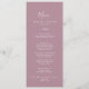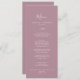 Cette carte de menu de mariage mauve aux feuilles minimes est parfaite pour un mariage boho. Le design se compose d'une simple silhouette de feuilles de verdure, dans une couleur romantique violet rose avec un style minimaliste bohème de jardin. Ce menu peut être utilisé pour une réception de mariage, un dîner de répétition ou tout événement.