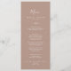 Cette carte de menu minimaliste pour mariage neutre en feuille est parfaite pour un mariage boho. Le design se compose d'une simple silhouette de feuille de verdure dans un ton naturel terreux avec un style bohème minimaliste du désert. Ce menu peut être utilisé pour une réception de mariage, un dîner de répétition ou tout événement.