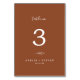 Ce numéro de table de mariage en terre cuite minimale est parfait pour un mariage boho. Le design se compose d'une simple silhouette de feuille de verdure orangée brûlée et minimaliste de style bohème désert. La carte s'imprime à l'avant et à l'arrière (double face). Les articles sont imprimés exactement comme ils apparaissent sur votre écran lorsque vous ajoutez au panier, donc personnalisez et ajoutez chaque numéro de table dont vous avez besoin à votre panier individuellement.