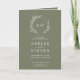 Ce programme de mariage minimal vert foncé feuille plié est parfait pour un mariage boho. Le design se compose d'une simple silhouette de feuille de verdure en vert d'olivier, au style bohème minimaliste de montagne.