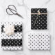 Motifs Monochrome poka point. Les variations sont des taches blanches sur des taches noires sur des points blancs et des points noirs/blancs mixtes sur des rayures.