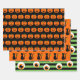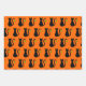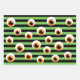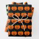 Trois motifs éffrayants pour Halloween. Il y a une lanterne citrouille sur un arrière - plan noir, un chat étoilé noir sur un arrière - plan orange, et placé au hasard des yeux de monstre sur des rayures vertes et noires.