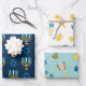Emballage cadeau Hanoukka - ensemble de trois modèles différents. Hanoukka 2023 commence jeudi 7 décembre au coucher du soleil se termine vendredi 15 décembre à la tombée de la nuit