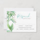 Conçu pour se coordonner avec mon ensemble de papeterie aquarelle Tropical Greenery, cette carte de réponse blanche et verte présente vos informations de réponse dans une typographie de script manuscrit minimaliste avec une bordure latérale de mes feuilles de bambou et de palmier aquarelles. Un espace est prévu pour que les invités ajoutent leurs informations de réponse et des options de choix de repas simples. La carte est au verso d'une couleur turquoise complémentaire. Pour voir la papeterie de mariage sur le thème de la plage assortie par Victoria Grigaliunas de Do Tell A Belle, visitez www.zazzle.com/dotellabelle