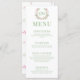 Améliorez le charme de votre réception de mariage avec ces cartes de menu sophistiquées et élégantes à mariage floraux. Décoré de fines couronnes florales roses et vertes et de monogramme de marié et marié et présentant un motif floral intemporel à l'arrière.