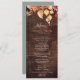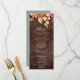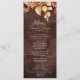 Cet automne laisse la carte de menu mariage en bois marron rustique est parfaite pour un mariage d'octobre. Le design rustique de la campagne présente de superbes feuilles d'automne aquarelle peintes à la main dans les teintes du coucher du soleil de jaune, orange brûlée et rouge bordeaux qui s'affiche sur un arrière - plan de faux bois. Ce menu peut être utilisé pour une réception de mariage, un dîner de répétition ou tout événement.