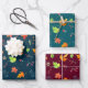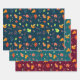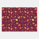 Érable, aquarelle, automne feuilles motif conçu sur trois couleurs arrière - plans différentes avec des glands. Un bleu marine ou turquoise foncé, un turquoise moyen et un arrière - plan de couleur rouge vif. Les feuilles sont de couleurs vives rouge, orange, vert, rose, violet, avec des baies rouges et bleues.