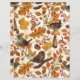 Motif d'automne peint à la main avec divers feuilles automnaux, baies, glands, oiseaux et champignons