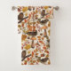 Motif d'automne peint à la main avec divers feuilles automnaux, baies, glands, oiseaux et champignons