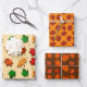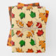 Envelopper le papier pour les anniversaires d'automne ou toute occasion d'automne. Cet ensemble de trois feuilles de papier est décoré de feuilles colorés. Ecru, ou papier beige clair, a un motif de chêne doré et de feuilles d'érable rouge, orange et vert. Le papier orange a un motif de feuilles d'érable rouge, et le papier brun riche a un motif de feuille orange. Le papier est mat ou brillant.