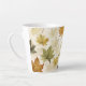 Cette petite tasse en latte est montrée avec une belle impression de feuilles d'automne. Customisez cet objet ou achetez tel quel.