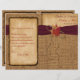 Ce magnifique programme de mariage d'automne rustique ou l'Ordre du Service dans les couleurs d'automne de l'orange brûlée, de la rouille, de l'or et du brun a des images de trois feuilles d'érable séchés avec un arc à deux branches IMPRIMÉ et un ruban à vin bordeaux foncé IMPRIMÉ, et un arrière - plan de sac à burlap FAUX avec un regard vieilli en papier brûlé sur lui qui correspond à l'invitation mariage de automne montré ci-dessous. Si vous avez besoin d'aide pour obtenir vos informations afin de les mettre en forme ou de les aligner correctement, veuillez envoyer un courriel à niteowlstudio@gmail.com. Votre document s'imprime tel qu'il apparaît sur votre écran. Il ne sera PAS édité pour les fautes de frappe ou l'alignement etc par Zazzle. ****VEUILLEZ NOTER que le papier de qualité supérieure est un stock de carte et ne se plie pas bien (fissure le design le long du pli, même si vous le pré-marquez avec un tranchant).