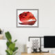 Étonnante feuille rouge rétroéclairée à la lumière du soleil, photographiée sur un carrelage blanc réfléchissant. Avec bordure décorative. Disponible en différentes tailles avec ou sans encadrement. Par Dwight Bennett de Natureworld Art.