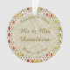 Ce magnifique ornement est pour un couple qui passe leur premier Noël ensemble depuis qu'ils se sont mariés. Le design comprend un motif de cornes et de feuilles de chêne. Les feuilles de chêne sont colorés du vert au jaune, orange et rouge pour représenter les changements en automne ou en automne. Le design est idéal pour un mariage d'automne ou d'automne. Il y a un cercle brun pâle avec des motifs marbrés blancs qui contient du texte personnalisable pour que vous puissiez inclure tous les détails importants