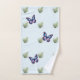 Améliorez votre espace avec une serviette fantaisie orée de feuilles de fougères vertes et de papillons vibrants et ludiques, sur un fond bleu doux pour un contraste saisissant.