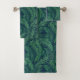 Carte feuille de palme tropicale verte sur arrière - plan bleu foncé.
