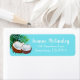 Feuilles de palmiers tropicaux mignons et étiquettes de adresse de noix de coco avec vos informations personnalisées.