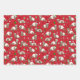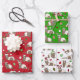 De mignons furets de Noël en chapeaux de Noël avec sucres de canne et lampes à cordes sur un arrière - plan rouge, vert et blanc avec des ornements éparpillés enveloppant des feuilles de papier.