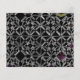 Un motif complexe de croix et de cercles gris qui s'entrelacent sur un fond noir avec juste une pointe de couleur.