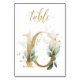 Belle carte de numéro de table avec un motif botanique - une illustration aquarelle de feuilles vertes et dorées. Table 10. Veuillez vérifier tous les numéros disponibles