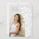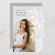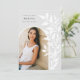 Le faire-part de graduation chic et moderne comprend une seule photo verticale/portrait en forme d'arc, avec des vignes d'escalades de feuilles botaniques blancs sur le côté droit. Personnalisez avec le nom de votre diplômé, l'année de cours et l'école et ajoutez un message personnel à l'arrière, ainsi qu'une photo supplémentaire.