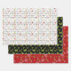 Salutations de Noël avec des mini icônes sur des points blancs, Holly et blancs sur des flocons de neige noirs multicolores sur un jeu de draps rouges.