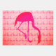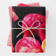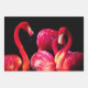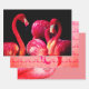 Trois feuilles d'enveloppement cadeau avec l'image de flamants roses, oranges, noirs et rouges.