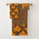 Élégant feuille d'érable d'automne en orange et marron moderne kit de serviettes de bain. La serviette de bain comprend des bordures avec le motif feuille en érable et des rayures au milieu.