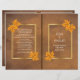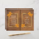 Feuilles d'érable orange sur papier grunge brun feuillet plié rustique cérémonie de mariage et programme de fête avec cadre or sur arrière - plan brun et feuilles d'érable orange sur les coins. Ce design mariage de automne moderne et élégant, à l'allure vintage, fait partie d'un ensemble ou d'une collection de mariages et est un modèle entièrement personnalisable, parfait pour un mariage d'automne. Vous devrez plier dans le centre pour avoir un programme plié. Choisissez seulement le type de papier de valeur comme il se plie bien.