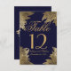 Design simple, moderne et élégant en faux or avec motif de feuilles dessinées sur fond bleu marine, carte de table de mariage. Ce design classique et sophistiqué est parfait pour une réception de mariage chic, élégante et tendance. Personnalisez avec des numéros de table personnalisés sur le devant ou ajoutez votre propre message personnel en cliquant sur le bouton "personnaliser". Ajoutez également votre propre monogramme initial personnalisé au dos. Conception d'impression photo.