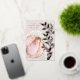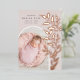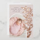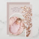 Faire-part de naissance chic et moderne, avec une seule photo verticale/portrait en forme d'arche, avec des vignes d'escalades de feuilles botaniques roses en feuille d'or sur le côté droit. Personnalisez avec le nom de votre bébé, la date de naissance et les statistiques, et ajoutez un message personnel au dos, ainsi qu'une photo supplémentaire.