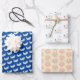 Ce trio de papier d'emballage en feuille plate présente un design floral amusant, avec un jardin à bulles et un oiseau bleu pâle. La première feuille a le petit oiseau bleu sur un arrière - plan bleu foncé. La deuxième feuille est le jardin coloré et l'oiseau bleu, et sur la troisième feuille il y a un arrière - plan jaune pâle avec un motif floral rose.
