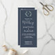 Feuilles aquarelles rustiques sur fond bleu marine, programme de cérémonie de mariage.