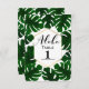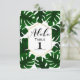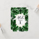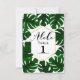 Feuilles tropicales vert foncé carte de numéro de table blanc et or