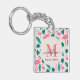 Feuilles tropicaux Flamant rose rose chaud moderne Monogramme Porte - clé
