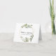 Cette carte de remerciement à feuilles vertes tropicales est parfaite pour un mariage simple ou tout événement spécial. Le design présente de belles feuilles vertes peintes à la main, ornant un cadre géométrique doré.