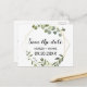 Ce feuille vert tropical enregistrer la carte de date est parfait pour un mariage de destination. Le design présente de beaux feuilles verts peints à la main, ornant un cadre géométrique doré.