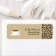 Étiquettes de adresse illustrant une tasse de café chaud sur une soucoupe à gauche. Sur le côté droit, on trouve des grains de café à droite. Personnalisez avec votre nom et votre adresse. Recherchez les articles correspondants chez Jill's Paperie.