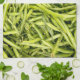 Fèves vertes sur une serviette de cuisine