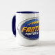Nobody wants to get up in the morning, but now you can at least start your day off right with coffee in an official FFN Mug. Add some flair to your mug design with the FFN Ringer Mug. Handle and lip of the mug are coloured to match. 11 oz. or 15 oz. Available in 10 colours. Dishwasher and microwave safe.